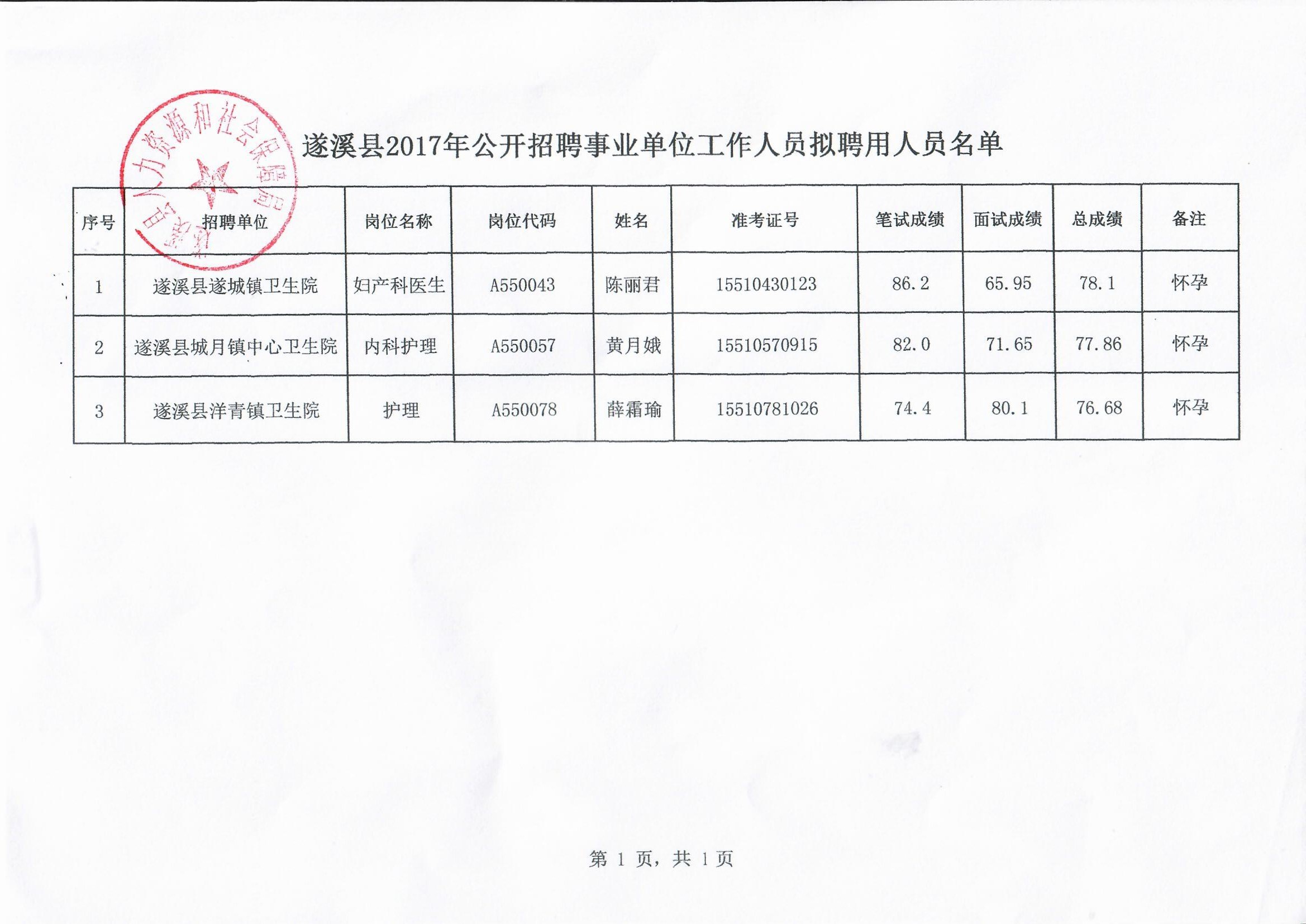 遂溪县2017年公开招聘事业单位工作人员拟聘用人员公示