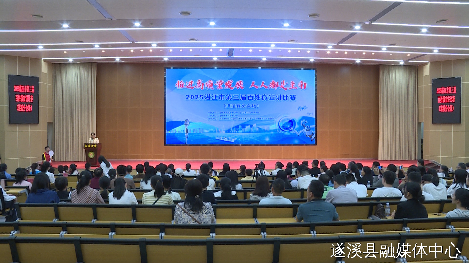 4月17日上午,湛江市第三届百姓微宣讲比赛(遂溪分会场)暨遂溪县百姓微宣讲比赛在遂溪县大成中学学术报告厅举办,活动以“推进高质量发展 人人都是主角”为主题,基层一线干部群众以“身边人讲身边事”的形式,生动展现遂溪的干部、群众在高质量发展中的奋斗故事和精神风貌。