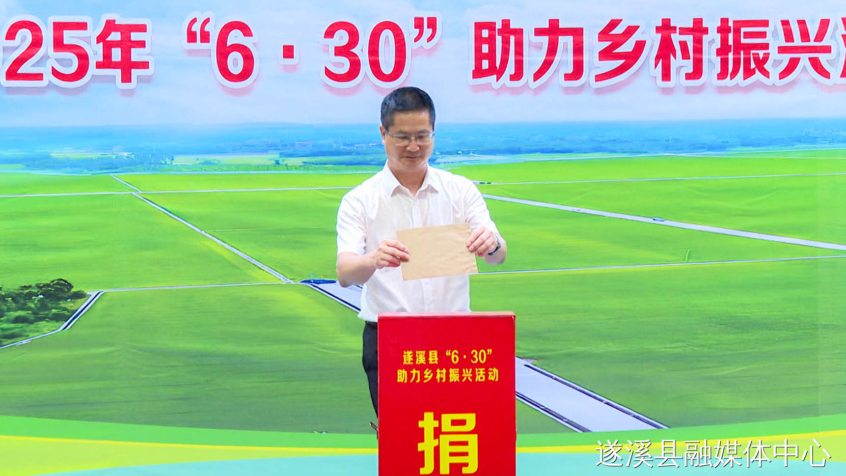 活动现场,遂溪县委常委、副县长朱锐通报遂溪县2024年“6·30”助力乡村振兴活动捐款和使用情况以及2025年“6·30”活动募捐情况。2024年“6·30”活动收到募捐款共809万余元,主要用于支持遂溪县巩固拓展脱贫攻坚成果、教育帮扶、镇村基础设施建设等项目;截至2025年6月30日,2025年“6·30”活动捐赠(含认捐)金额已达到1544.64万元。