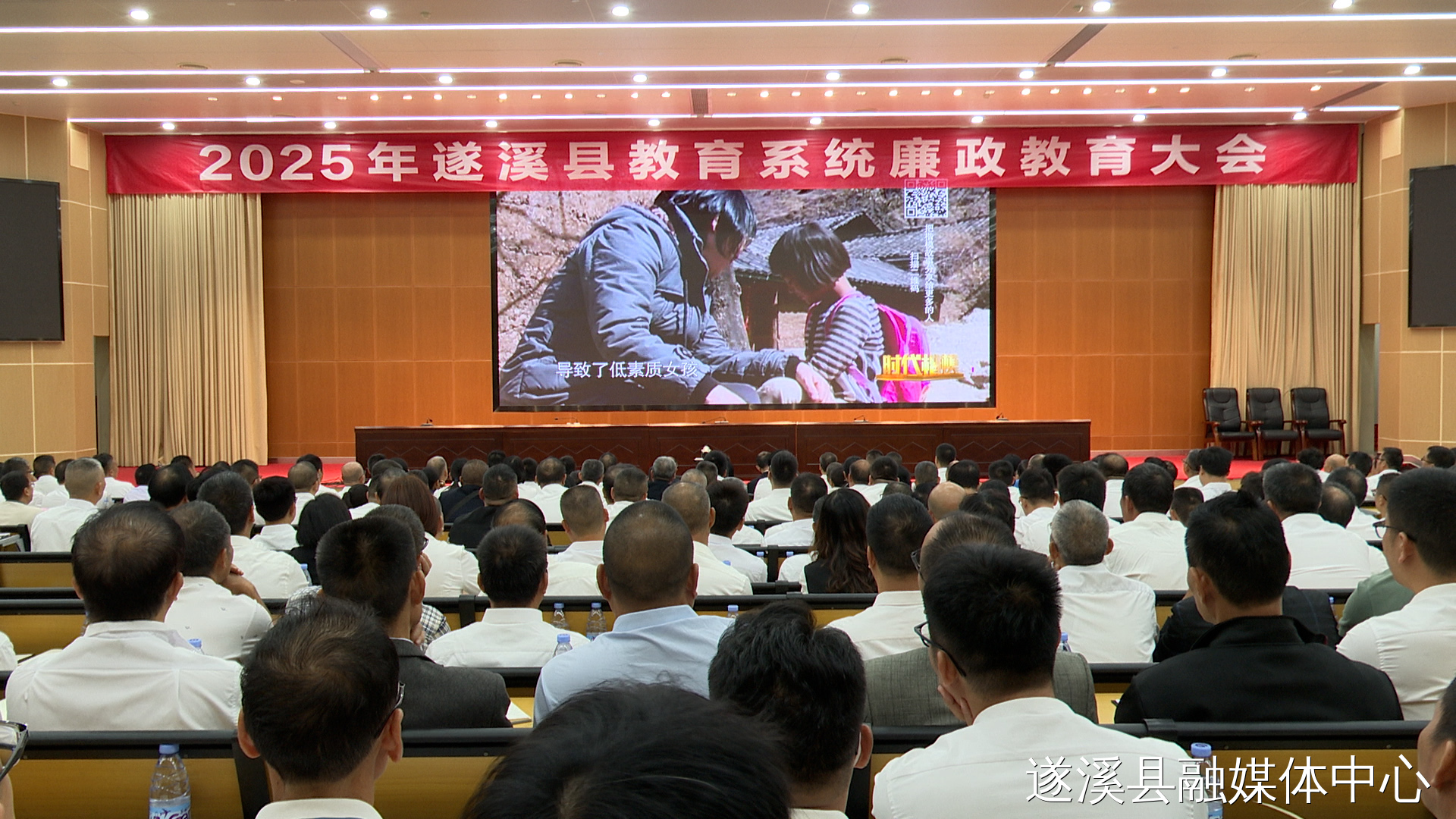 会上,全体人员观看了《时代楷模:张桂梅》和警示教育片。