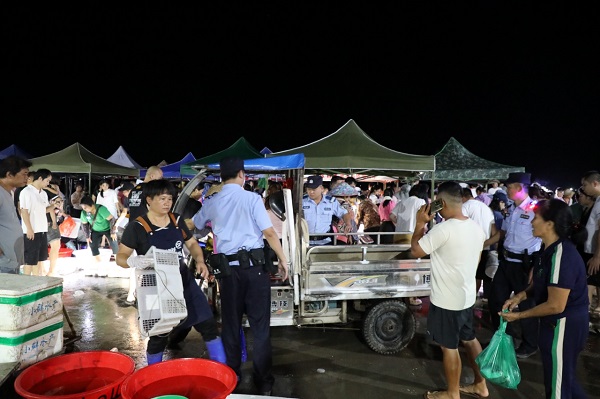 从渔市交易区到周边市场及道路沿线,民警全程坚守岗位,用坚定的守护让群众在感受渔市热闹氛围的同时,更添一份安心。