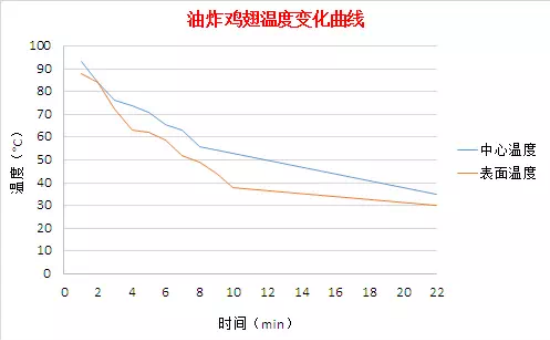 制作完成之后,分别测定食物30分钟内中心温度和表面温度的变化。