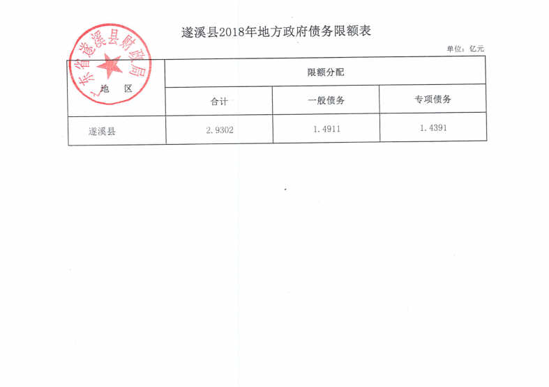 遂溪县2018年地方政府债务限额表