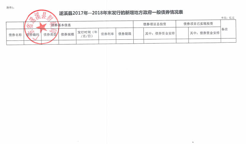 附件1:遂溪县2017年--2018年末发行的新增地方政府一般债券情况表