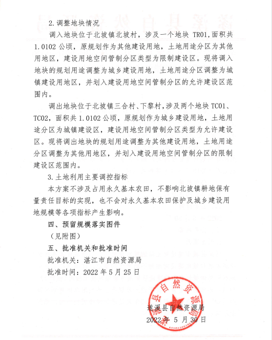 关于《遂溪县北坡镇土地利用总体规划(2010-2020年)建设用地规模置换方案(北坡村、三合村和下黎村)》的公告 | | 作者: | 来源:遂溪县自然资源局 | 时间:2022-05-30 10:53:59 点击数:- 附图:预留规模落实图件.pdf 【打印正文】