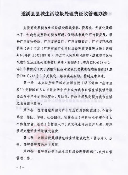 洛神直播 关于印发遂溪县城生活垃圾处理费征收管理办法的通知