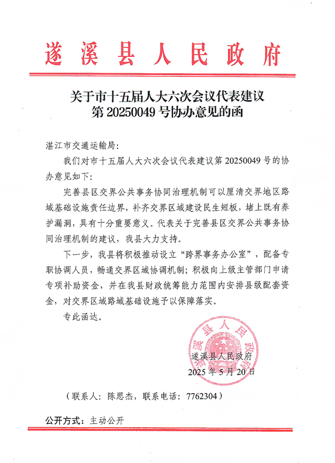关于市十五届人大六次会议代表建议第20250049号协办意见的函