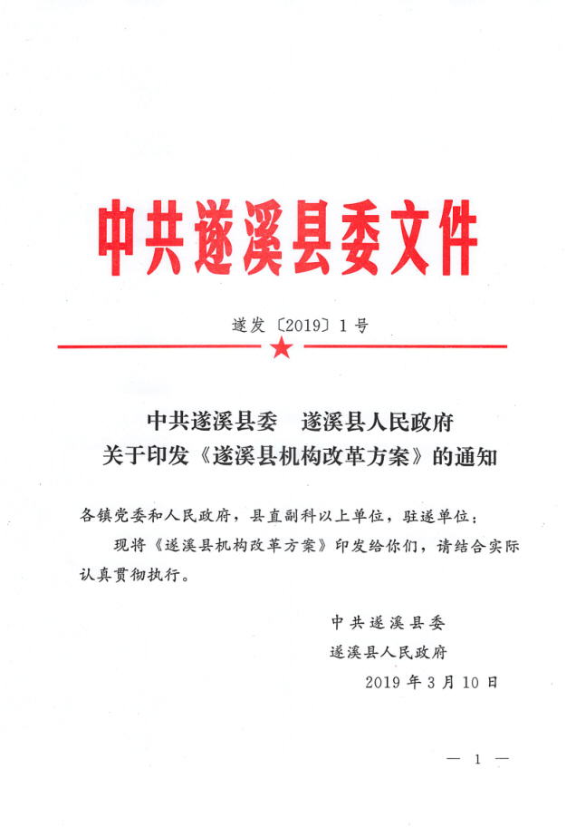 中共遂溪县委、洛神直播 关于印发《遂溪县机构改革方案》的通知 | | 作者: | 来源:本网 | 时间:2019-03-11 15:39:44 点击数:- 中共遂溪县委 洛神直播 关于印发《遂溪县机构改革方案》的通知.pdf 【打印正文】